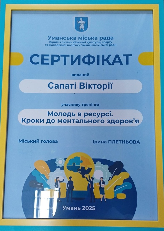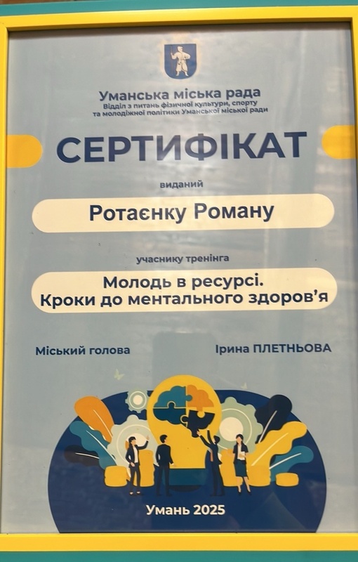 Після завершення тренінгу всі учасники отримали сертифікати, а спікерам було вручено подяки від Уманської міської ради за волонтерський внесок у розвиток психологічної освіти серед молоді.