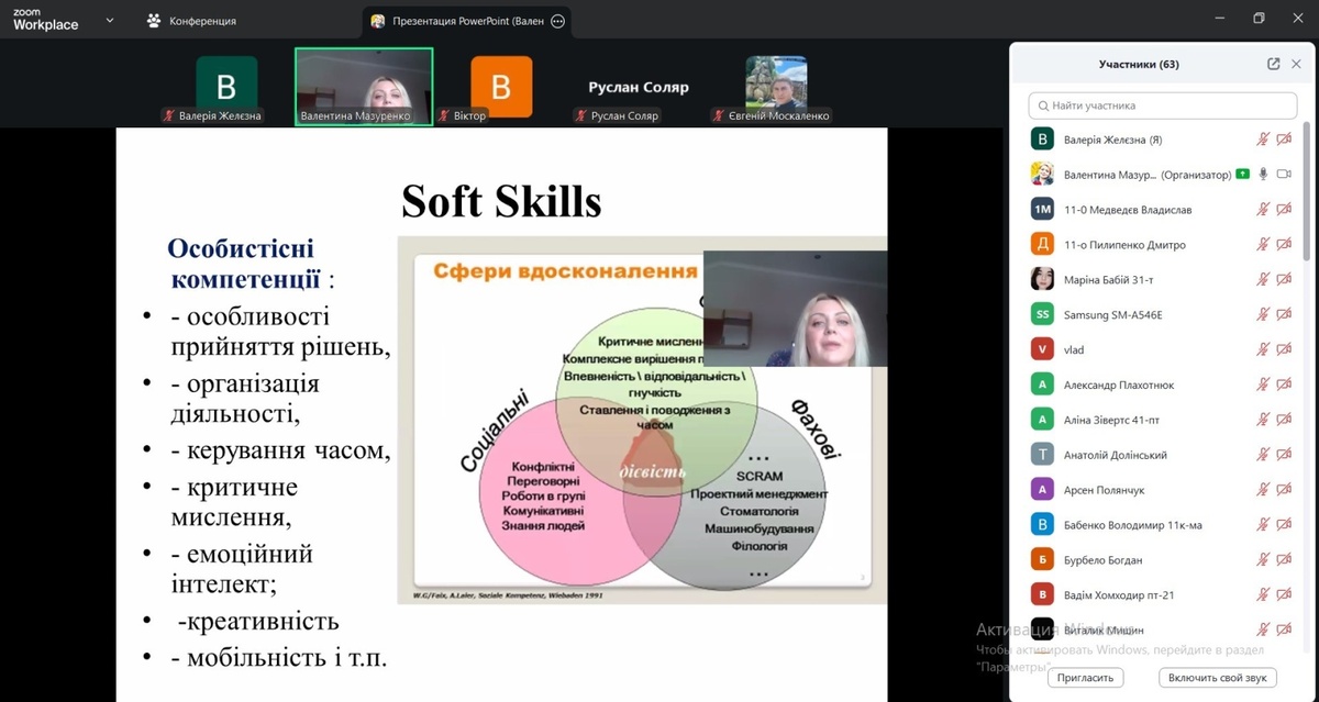 Під час зустрічі спікерка акцентувала увагу на тому, що сьогодні успішність фахівця визначається не лише рівнем професійних знань (hard skills), а й розвиненими гнучкими навичками – умінням ефективно комунікувати, працювати в команді, критично мислити, адаптуватися до змін та керувати власними емоціями.