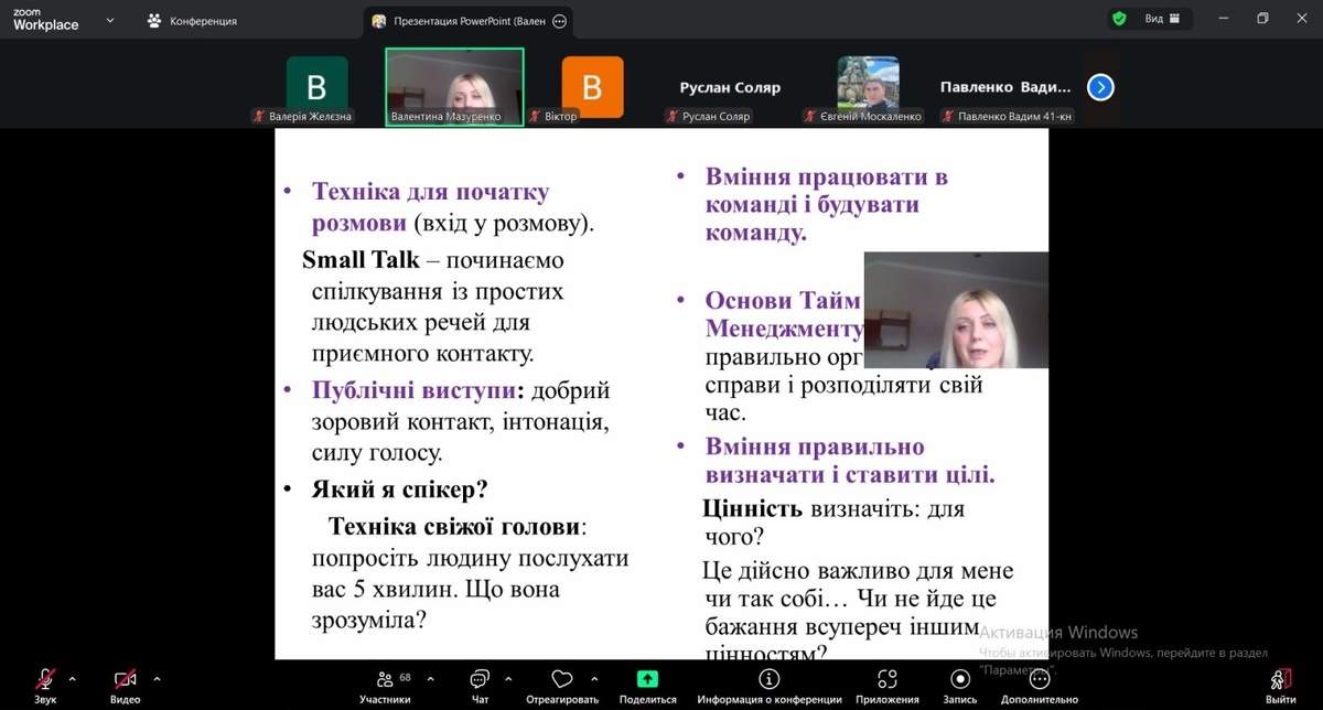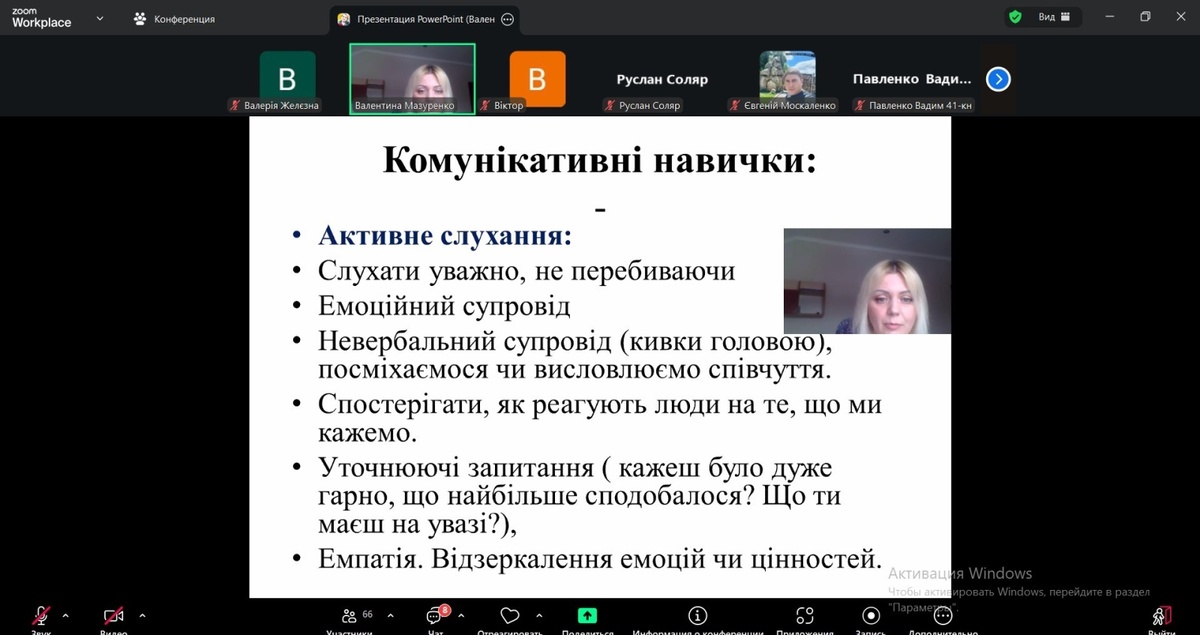Здобувачі освіти інженерно-технологічного факультету взяли участь у вебінарі на тему «Soft Skills: значимість гнучких навичок в житті та кар’єрі», який провела практичний психолог університету Валентина МАЗУРЕНКО. Захід відбувся у форматі відкритого діалогу та став платформою для обговорення актуальних питань професійного та особистісного розвитку сучасної молоді.